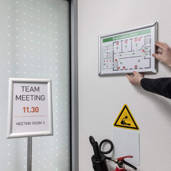 Az alumínium pattintható keretek lehetővé teszik az információk színvonalas megjelenítését. Diszkrét megjelenésükkel sokoldalúan használhatók ajánlatokhoz, biztonsági és tájékozódási információkhoz és egyéb hirdetményekhez